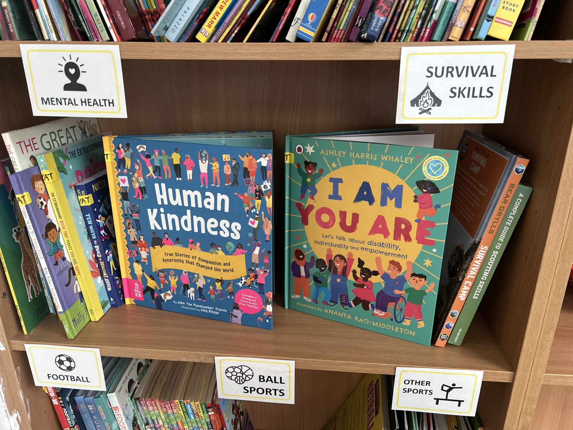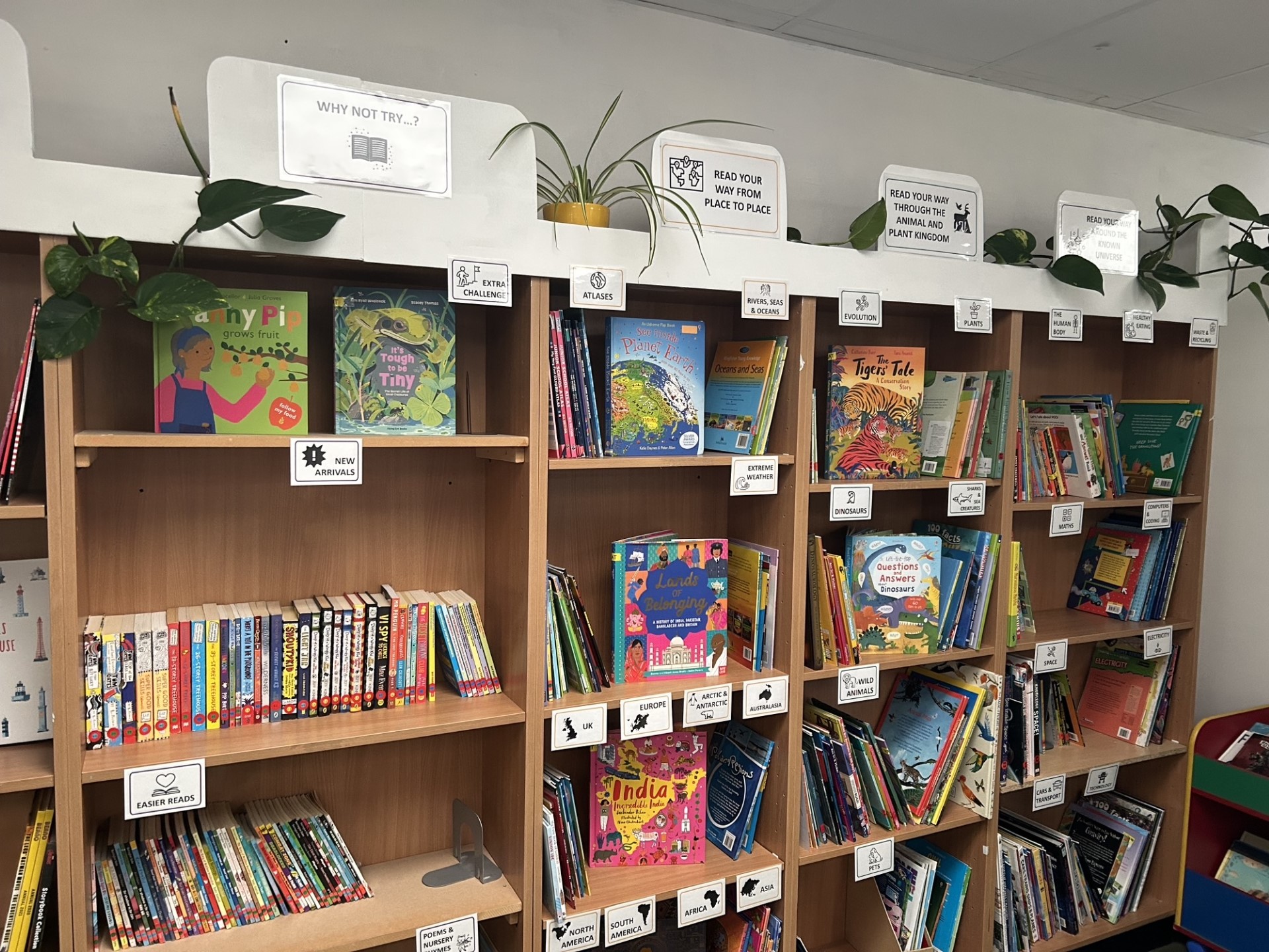 Our well-stocked and vibrant library celebrates a wide range of texts, including brand-new releases and a diverse range of authors and topics. Our books are organised systematically and labelled using dual-coded images to support children in choosing the text that they would like to explore.
